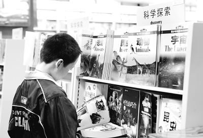 一名学生在北京王府井新华书店内看科普书籍。CFP