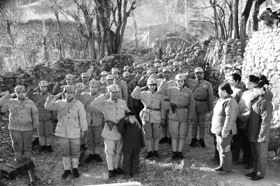 耿三七:乡亲们,我们今天就要走了,今生今世只要我们还活着,我们就不会忘了是阜平人民养育了我们,是晋察冀人民的大恩大德,我们才有今天,你们的嘱托就是爹娘的嘱托,你们的期盼就是爹娘的期盼,你们放心,儿子们不会让爹娘失望的。同志们,我们为谁扛枪?为谁打仗?我们是谁的兵?