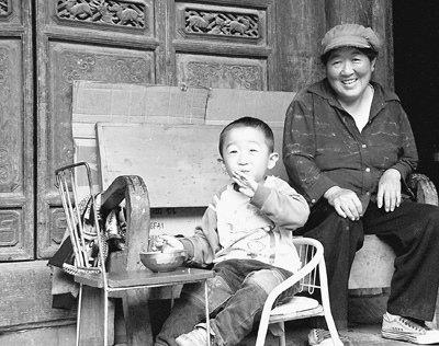 在欧阳大院里,赵德和老人正看着小孙子吃饭。记者 胡洪江摄