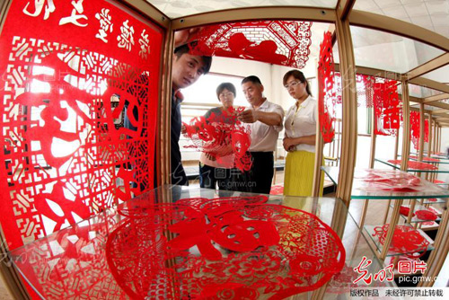 坐落于“中华剪纸第一村”——山东无棣水湾镇前孟桥村的荣德堂,创建于600多年前的明朝永乐年间。其作品丰富多彩、千姿百态,有神话传说、戏剧脸谱、历史人物、飞禽走兽、人情风俗等3000多个品种。图为9月23日,荣德堂的剪纸师傅正在给几个年轻徒弟上课。