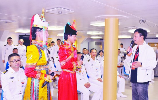 姜昆、戴志诚、朱军在表演和主持节目时,也纷纷把他们在辽宁舰上看到的官兵们的文化生活和励志心声,巧妙融入作品之中,传达出一份深深的感动和尊敬;