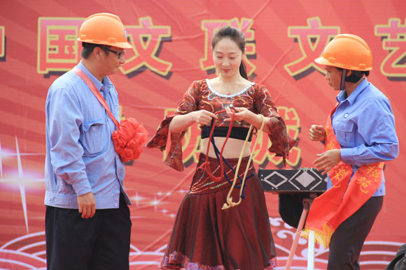 10月18日至19日,“送欢乐下基层”半岛公司官方网站入口查询文艺志愿服务团赴广西防城港慰问演出。19日上午,艺术家在港务集团集装箱码头为工人表演。图为表演现场。中国文艺网 何瑞涓 拍摄