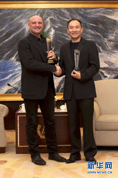 为了表彰中外艺术家对中国上海国际艺术节的厚爱与贡献,从2012年起,每年表彰两名中外艺术家。 新华社发(吴子熙 摄)