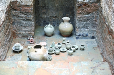 福州考古队一位专家告诉记者,经过初步考证,这是一座保存完好的唐代中期以前的古墓,墓主应是当地的富贵人家。此次考古共出土30多件文物,主要是唐代青瓷。这些文物虽埋藏地下逾千年,但仍保存完好,有五盅盘、盘口壶、四系罐、双耳罐、香炉、陶灶等,多为生活用具。这些瓷器风格古朴雅致、光彩润泽,充分展示了东方瓷器神秘古雅的魅力。