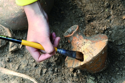 第八次考古发掘出土的陶壶。 新华社记者 朱祥摄