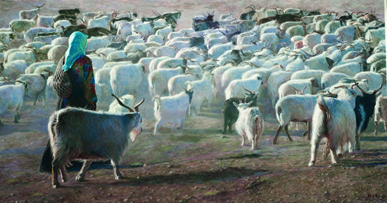 韩玉臣油画作品《牧羊女》获法国国家沙龙展金奖 《牧羊女之二》 320×170cm