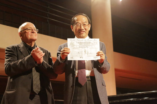 展览期间,经法国国家美术家协会组织的专家学者认真评选,韩玉臣油画作品《牧羊女》获展会最高奖“沙龙展金奖”,摄影作品《业拉山》获“评委银奖”。15日晚18时颁奖仪式上,韩玉臣成为第一个上台领奖的中国艺术家,并以一个人同时获两项高奖创本届展览记录。
