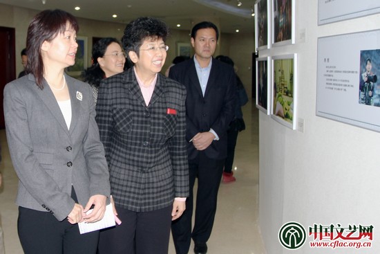 “追寻中国梦——摄影家采风创作基层行”作品展在中国文艺家之家举办,中国文联党组书记、副主席赵实(中),半岛公司官方网站入口查询党组成员、书记处书记李前光(右),中国摄影家协会主席、分党组会书记王瑶(左)参观展览。中国文艺网 郭青剑 摄