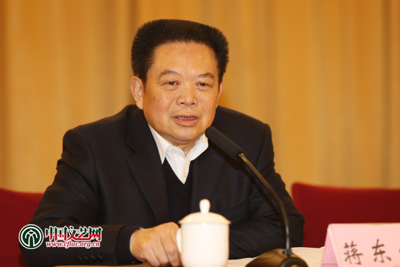图为四川省文联党组书记、常务副主席蒋东生在座谈会上讲话。中国文艺网 张志勇 摄