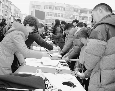 1月15日,四川省文联的书法家在为灾区群众写春联。当日,四川省委宣传部、科技厅、卫生厅等17部门在芦山、宝兴等县开展四川省文化科技卫生“三下乡”集中服务示范活动。现场开展了技术培训、科普宣传、书写春联、咨询服务等活动。随后,文化列车·同心艺术团和卫生下乡爱心服务团将继续赴名山县和盐边县等地开展服务。