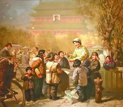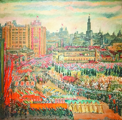 第二篇章“艰苦奋斗:国家建设之路”,主要展现新中国欣欣向荣的时代气象和辉煌的建设成就。中国艺术家们深入生活,关注现实,以现实主义的创作手法,表现自豪、幸福的中国人民和改天换地的新中国建设景象。展览现场,张京生、王元珍的油画《没有共产党就没有新中国》,刘海粟的油画《庆祝社会主义改造胜利》,孙滋溪的油画《天安门前》,吴云华的油画《跨过鸭绿江》等佳作引人注目。这一时期,中国美术的创作主题呈现出前所未有的宽广性,大批思想性和艺术性俱佳的作品传达了蓬勃向上的精神与力量。