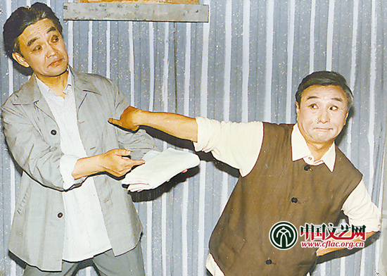 1.1985年9月,翁双杰(右)在滑稽戏《不是冤家不碰头》中饰丁雨柏