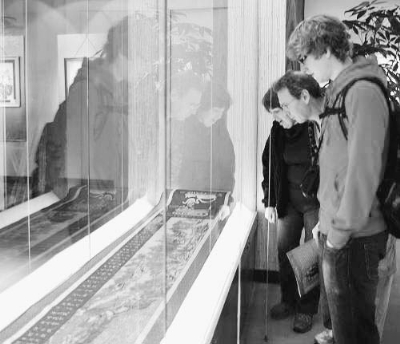 2012年12月28日,“世界非物质文化遗产柘荣剪纸展览”在福建福州开幕,图为外国游客在参观展览。新华社记者 林善传 摄