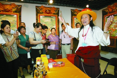 观众参观唐卡展览。 陈 曦 摄