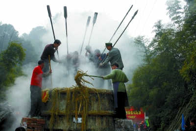 夹江竹纸制作技艺中的一环——簧锅蒸煮 (乐山市文广新局供图)