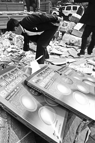 4月25日,安徽淮南市集中销毁一批盗版教材。陈彬/CFP
