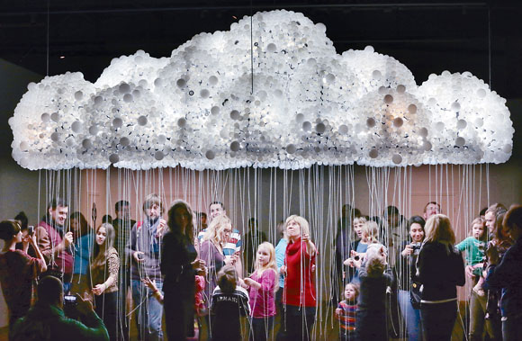 新年之际,人们在俄罗斯首都莫斯科高尔基公园举行的“体验艺术”展上参观。