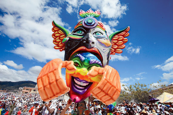 1月6日,在哥伦比亚帕斯托举行的“黑与白”狂欢节上,参加者在脸上分别涂抹黑色和白色粉末,象征当地的种族平等与文化融合。2009年,这一狂欢节被列入联合国教科文组织“人类口述和非物质文化遗产代表作”。 新华社/EPA欧新