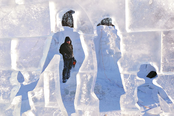 近日,名为《奥林波斯山上的雕塑》冰雕雪雕秀在莫斯科库兹明基公园举行。