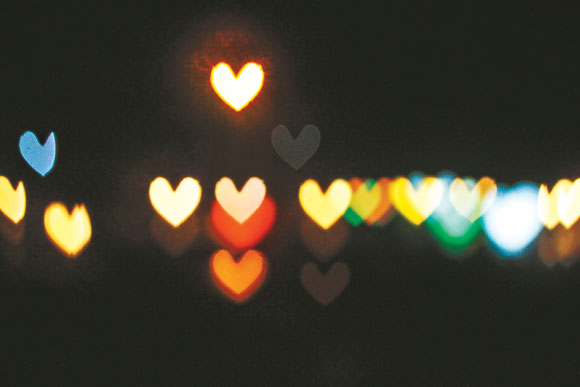 4月6日,广州阴雨连绵,远处的灯光在镜头的虚化下化作心形(遮挡拍摄)。