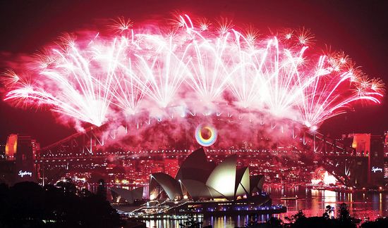 5. 绚烂的新年焰火照亮澳大利亚悉尼上空。新华社/路透