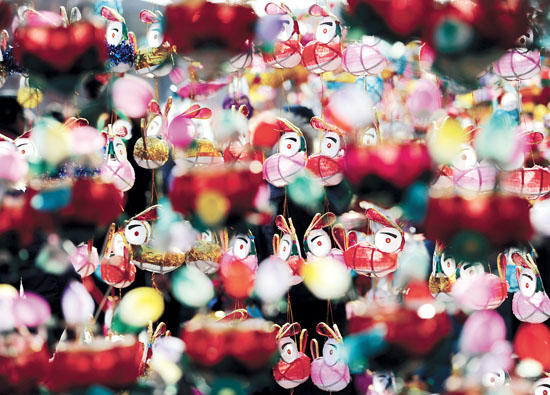 这是2月2日在南京夫子庙花灯市场拍摄的各式传统花灯。随着元宵佳节临近,在南京夫子庙秦淮灯会上,花灯似海,人流如潮,前来赏灯、购灯的市民和游客络绎不绝。新华社发