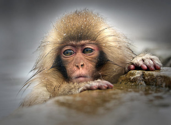 一只幼年野生日本短尾猿。摄影师:格拉汉姆-摩根。