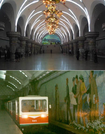 平壤地铁(朝鲜):平壤地铁无疑是朝鲜平壤交通基础设施的重要部分。平壤地铁在建筑风格上在世界上都是非常吸引人的。