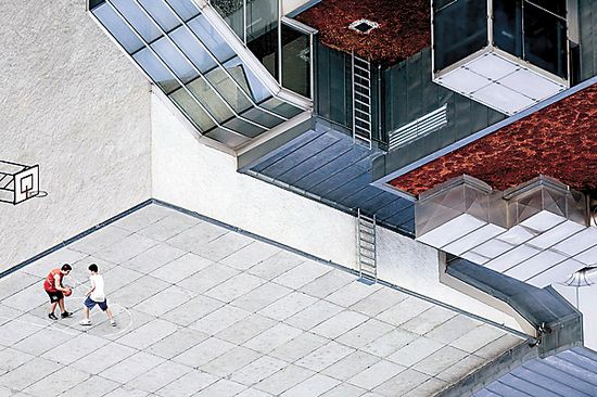 迈克尔·凯的作品《此面向上》利用错视的技巧,将照片里“凹”与“凸”的不同空间以后制的方式结合,让整个平面空间扭曲,打破了我们习惯的2D、3D空间,创造出怪异的场景。摄影师希望传达给观赏者的是:难道世界真的是我看到它的样子吗?还是我们相信所以才看到这个样子?抑或是我们自己感知环境的心理定式?