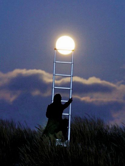 这一系列作品名为《月亮游戏》,出自洛朗·拉夫德,一名业余天文摄影师,也是一位天文记者,他擅长在天文风景摄影领域进行创新,他利用月亮升起和落下的自然景观,巧妙地让人在照片前景加以配合,创作出了一系列独一无二的有趣照片,视觉效果唯美并充满奇幻乐趣。