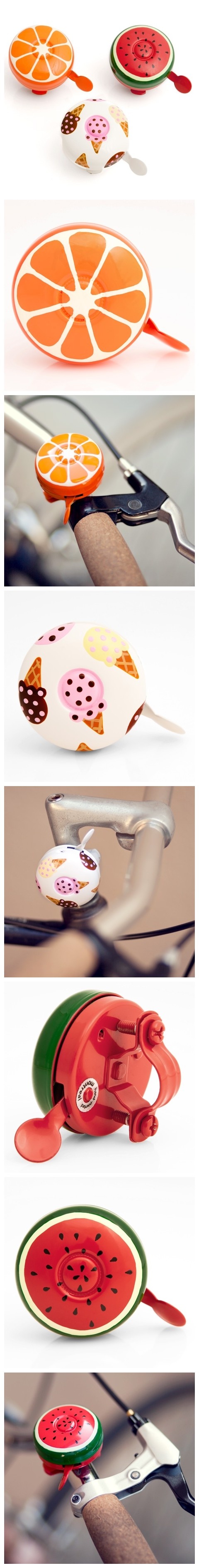 铃~铃~~自行车应该是不少人的代步工具,尽管平时大多开车,但是我也喜欢享受骑着单车,乘风而行的快感。今天要分享这些看来美味可口的自行车铃铛,一共有冰淇淋、柳橙和西瓜等图案,想不到除了警示的作用,这些养眼铃铛的出现,更为视觉添上了不同的感受。