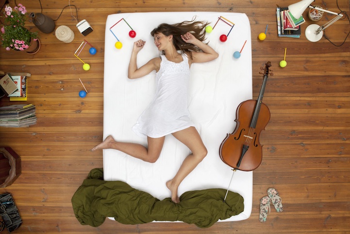 他请来一名普通的美丽女子,作为这组作品中的主角。他用常见的家居用品,比如被子、领带、袜子、唱片等摆放成各种梦境中的形象,再让这名女子躺在床上,摆着在梦境中天真活泼的姿势,然后将这些甜美的梦境用相机记录下来,展示给所有读者。