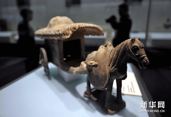 (3)这是从丹麦追索回归的中国元代灰陶马车(12月25日摄)。