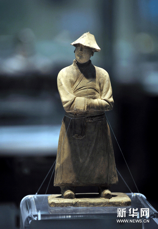 (5)这是从丹麦追索回归的中国元代灰陶鞑帽俑(12月25日摄)。
