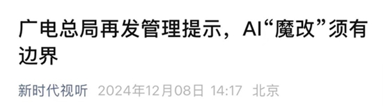 12月7日,广电总局网络视听司发布《管理提示(AI魔改)》。