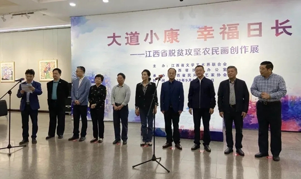 中国民间文艺家协会微信公众号报道:9月21日,由江西省文联、江西省扶贫办主办,江西省民协承办的“大道小康 幸福日长”江西省脱贫攻坚农民画创作展开幕式在江西省文联展厅举行。