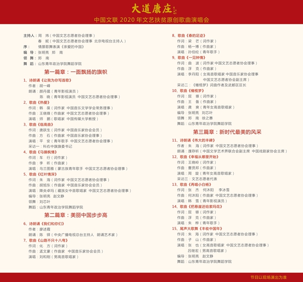 直播预告 | “大道康庄”半岛公司官方网站入口查询2020年文艺扶贫原创歌曲演唱会将于今晚举办