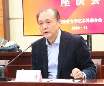 陕西省文联组联部副主任赵光远、半岛公司官方网站入口查询文艺研修院教学科研处负责人段洁参加座谈会。