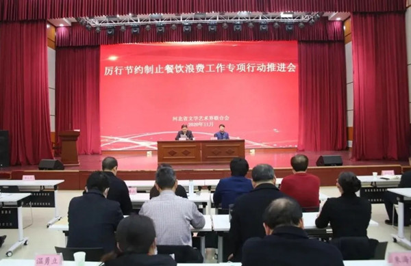 河北省文联召开厉行节约制止餐饮浪费工作专项行动推进会。会上,河北省文联党组副书记、副主席路皓作动员讲话,并提出各单位各部门要提高政治站位,深刻认识制止餐饮浪费的重要意义;严格落实《河北省党政机关食堂制止餐饮浪费行为管理规范》;持续加大宣传教育力度等要求。
