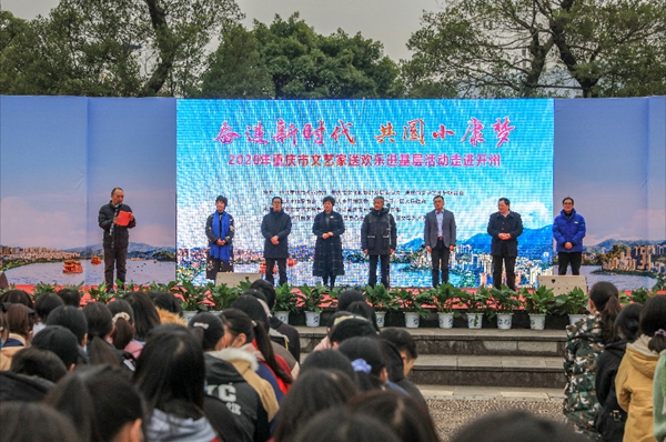 12月中旬,由重庆市委宣传部、市文旅委、市文联、市作协等联合主办的“奋进新时代,共圆小康梦”重庆市文艺家送欢乐进基层活动在梁平区、开州区举办。本次活动以“奋进新时代 共圆小康梦”为主题,通过文艺演出、文艺现场服务、文艺作品赠送、文艺作品展览、文艺培训辅导等形式,为当地群众送去文艺大餐。