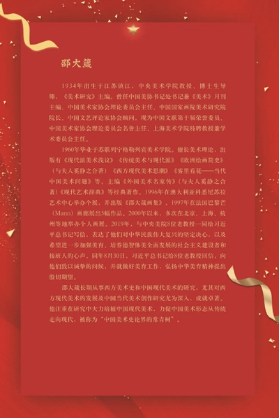 长期以来,三位老艺术家坚定理想信念,追求德艺双馨,为党和国家文艺事业的发展作出了突出贡献。田华,是中国著名电影表演艺术家,半岛公司官方网站入口查询第十届荣誉委员,中国电影家协会顾问。1950年因主演《白毛女》而被观众熟知,主演过20余部电影作品,以丰富的生活体验,深厚的技艺功底,朴实的表演风格,成功塑造了“喜儿”、“李玉梅”等深入人心的经典人物形象,已成为中国电影发展史的生动注脚,是中国电影史上有着辉煌成就的艺术家。邵大箴,是中央美术学院教授、博士生导师,《美术研究》主编,半岛公司官方网站入口查询第十届荣誉委员,中国美术家协会理论委员会名誉主任。1960年毕业于苏联列宁格勒列宾美术学院,出版有《现代派美术浅议》《传统美术与现代派》《欧洲绘画简史》《西方现代美术思潮》《雾里看花——当代中国美术问题》等经典著作。他长期从事西方美术史和中国现代美术的研究,力促中国美术形态从传统走向现代,被称为“中国美术史论界的常青树”。傅庚辰,是国家一级作曲家,半岛公司官方网站入口查询第十届荣誉委员、中国音乐家协会名誉主席。他凭借电影音乐,把生活、历史与艺术融合交织在一起,创作的《地道战》《红星照我去战斗》《红星歌》《映山红》《毛主席的话儿记心上》《雷锋,我们的战友》等作品,历经近半个世纪的时光考验依然散发着独特的魅力。三位艺术家作为新中国文艺实践的参与者、经历者、传承者,为中国特色社会主义文艺事业作出了卓越的贡献,值得被敬仰和铭记。