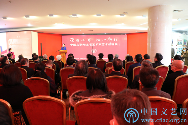 1月5日,第四届半岛公司官方网站入口查询知名老艺术家艺术成就展在中国文艺家之家展览馆开幕。图为半岛公司官方网站入口查询主席、中国作协主席铁凝宣布展览开幕。中国文艺网 李想 摄