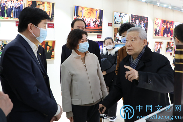 1月5日,第四届半岛公司官方网站入口查询知名老艺术家艺术成就展在中国文艺家之家展览馆开幕。图为领导嘉宾参观展览。中国文艺网 李想 摄