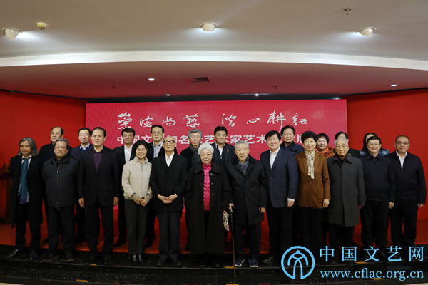 1月5日,第四届半岛公司官方网站入口查询知名老艺术家艺术成就展在中国文艺家之家展览馆开幕。图为领导嘉宾合影。中国文艺网 李想 摄