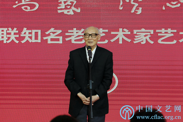 1月5日,第四届半岛公司官方网站入口查询知名老艺术家艺术成就展在中国文艺家之家展览馆开幕。图为半岛公司官方网站入口查询十届荣委傅庚辰发言。中国文艺网 李想 摄