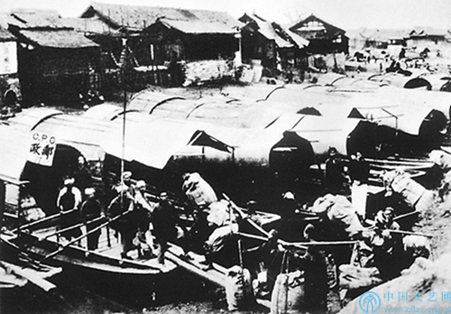 用船只运送邮件的场景 杭嘉湖水网 20世纪20年代嘉兴邮电博物馆提供