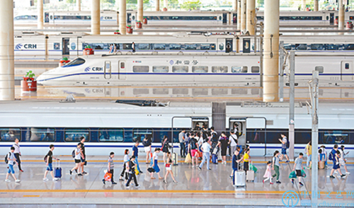 高铁站穿梭的旅客 江苏南京 2018年蒋宁 摄