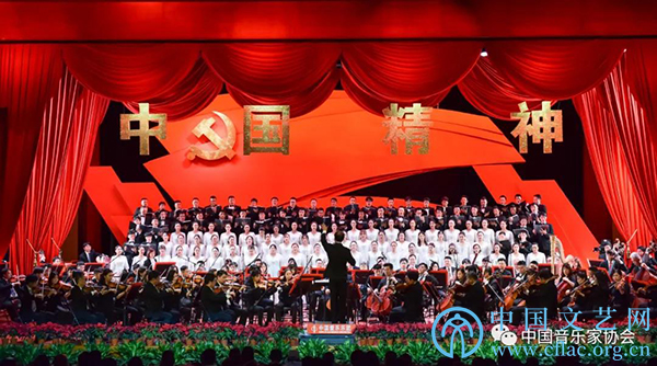 为隆重庆祝中国共产党成立100周年,由中国音协、中共山东省委宣传部、中共福建省委宣传部共同举办的原创交响合唱组歌《中国精神》在中国国家博物馆剧院绚丽呈现。组歌《中国精神》以建党百年来,在波澜壮阔的历史进程中诞生的以爱国主义为核心的民族精神和以改革创新为核心的时代精神为脉络,回溯历史、展望未来。