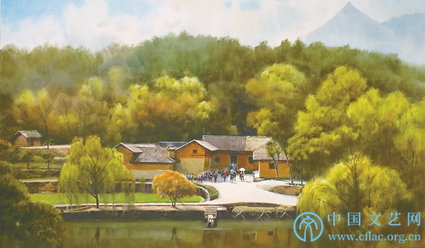 新中国的明媚阳光·毛泽东故居(水彩画) 黄铁山