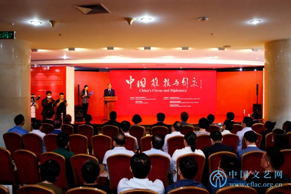 7月20日,“中国杂技与外交”图片展览在中国文艺家之家展览馆开幕。图为展览开幕式现场。